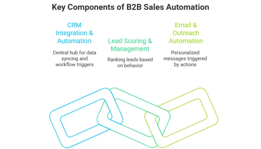 To get the most out of B2B sales automation, it’s important to understand the key components that drive the process. These tools and features help streamline workflows, reduce manual tasks, and increase productivity. Let’s take a closer look at the core elements of sales automation that power successful B2B sales strategies.