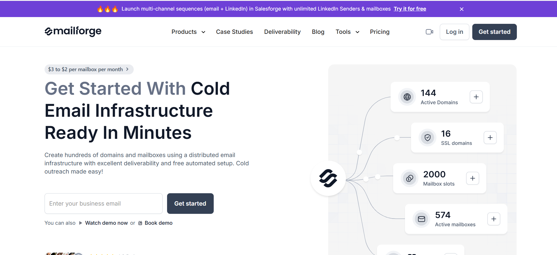 Mailforge is a dedicated cold email infrastructure provider focused on setting up domains and inboxes at scale.