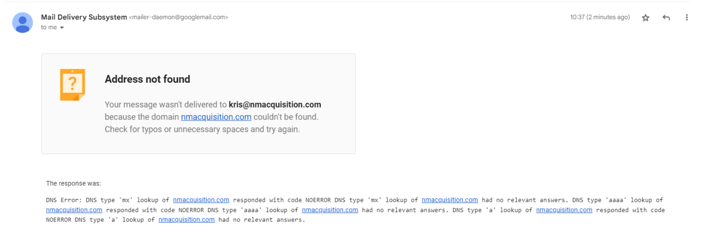 ✔ The email looks correct✘ There is no confirmation that the inbox exists